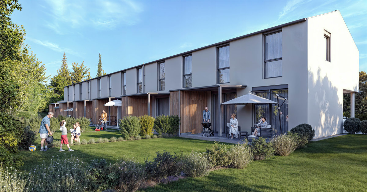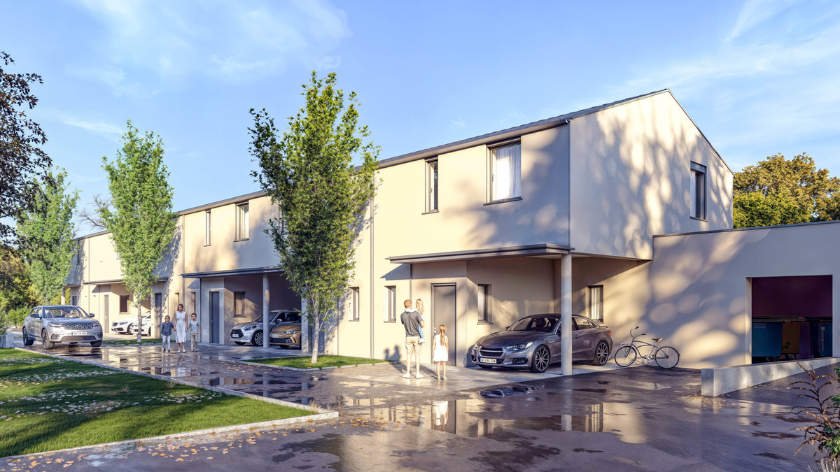 - Überdachte Abstellplätze direkt bei den Reihenhäusern